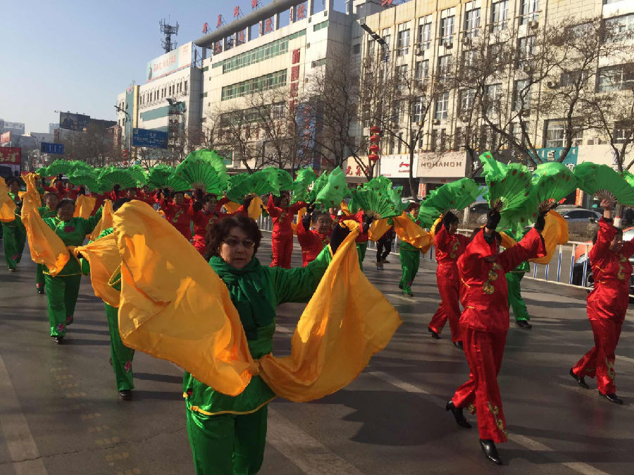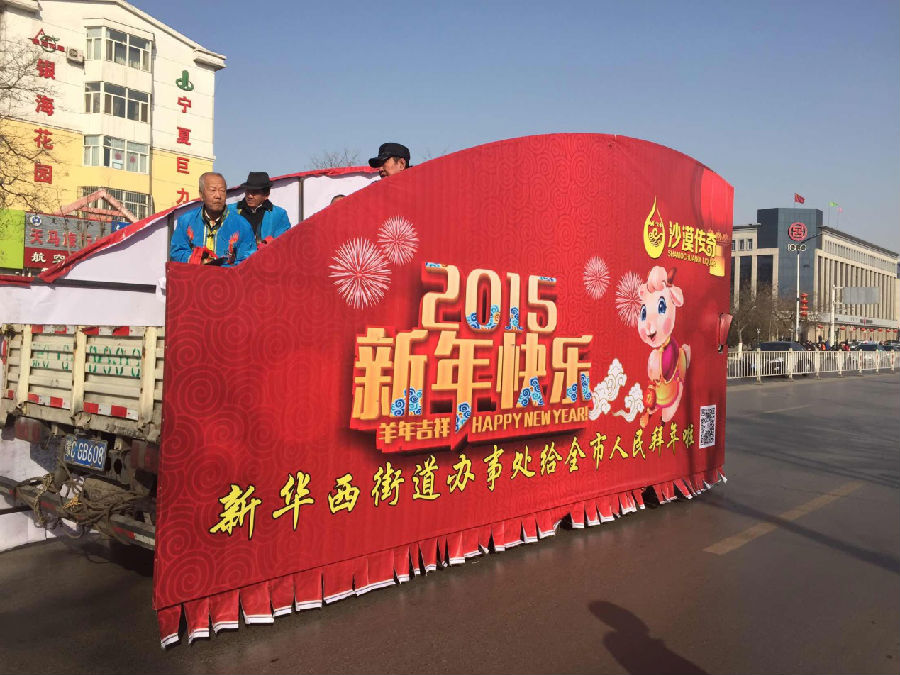 来自新华西街道办事处的一辆彩车、4支秧歌队自通用广场门前沿着主街道,踏着鼓点、迈着步伐,向全市人民拜年。一路欢天喜地,在人民广场还表演了精彩的节目。秧歌队的队员们个个精神抖擞、神采飞扬,他们身着靓丽的服装、舞起动感的舞蹈,手拿彩绸和花扇等道具尽情挥舞,把喜庆和欢乐送给现场群众,营造出浓浓的马年气息,为全市人民奉献了一道丰盛的文化大餐。