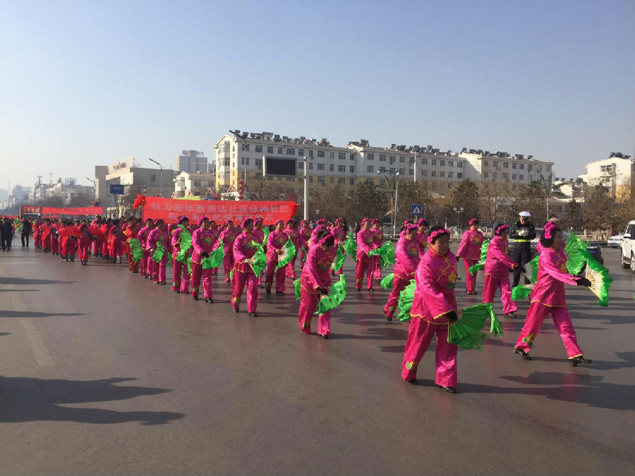 花似海,歌如潮,锣鼓喧天歌盛世;鼓阵阵,舞翩翩,彩练当空迎春来。3月5日,2015年元宵节秧歌汇演在广大市民的期待中如期举行。来自全区6个街道办事处和单位队伍组建的表演队将利用彩车巡游、秧歌、舞蹈等多种民间形式为大家呈现了一场富有浓郁乡土气息的“文化大餐”,掀起了2015年春节,元宵文化系列活动的新高潮。上万名群众涌上街头,欢欢喜喜过大年,红红火火闹元宵。