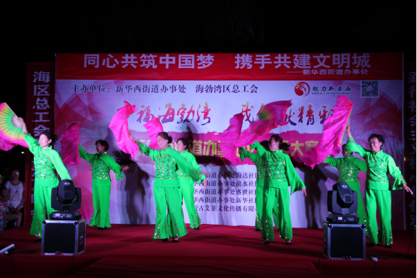 正逢炎热酷暑之际,为丰富我辖区单位、社区居民业余文化生活,落实文化惠民工程,构建和谐幸福家园,推动精神文明创建及今年创建文明城市工作的深入开展,新华西街道办事处与海勃湾区总工会于8月1日晚上8点在黄河明珠广场联合举办了《幸福海勃湾》达人秀大赛。
