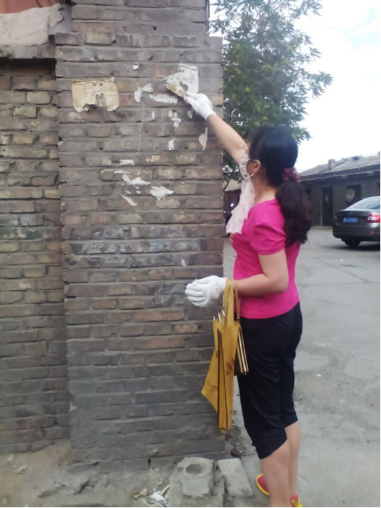 9月26日上午新华西街道办事处盛世社区工作人员,办事处志愿者和图书馆、博物馆的志愿服务人员来到新西南一街坊单平房区清理垃圾,铲除小广告,为社区居民营造一个美好的生活环境,也带动了居民都自觉爱护公共卫生的积极性。