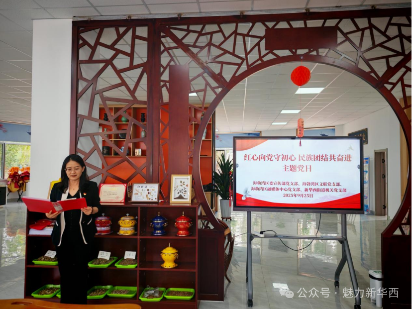 主题党日活动在新华西街道党工委书记贺海云的主持下拉开帷幕。紧接着,庄严的国歌声响起,全体党员奏唱国歌后,由海勃湾区委宣传部常务副部长孙凯带领全体党员重温入党誓词,铿锵有力的誓言回荡在活动现场,更坚定了大家“感党恩、听党话、跟党走”,为国家建设贡献力量的决心。全体党员完成奏唱国歌、重温入党誓词、领诵党章党规、党费等规定动作后,集中开展了专题政治理论学习。活动现场的党员干部共同学习了习近平总书记关于加强和改进民族工作的重要思想、习近平总书记在全国民族团结进步表彰大会上的重要讲话精神、《内蒙古自治区全方位建设模范自治区促进条例》、孙绍骋书记2024年12月4日在北疆文化文艺创作工作座谈会上的讲话精神等内容,为活动奠定了坚定的政治基调。